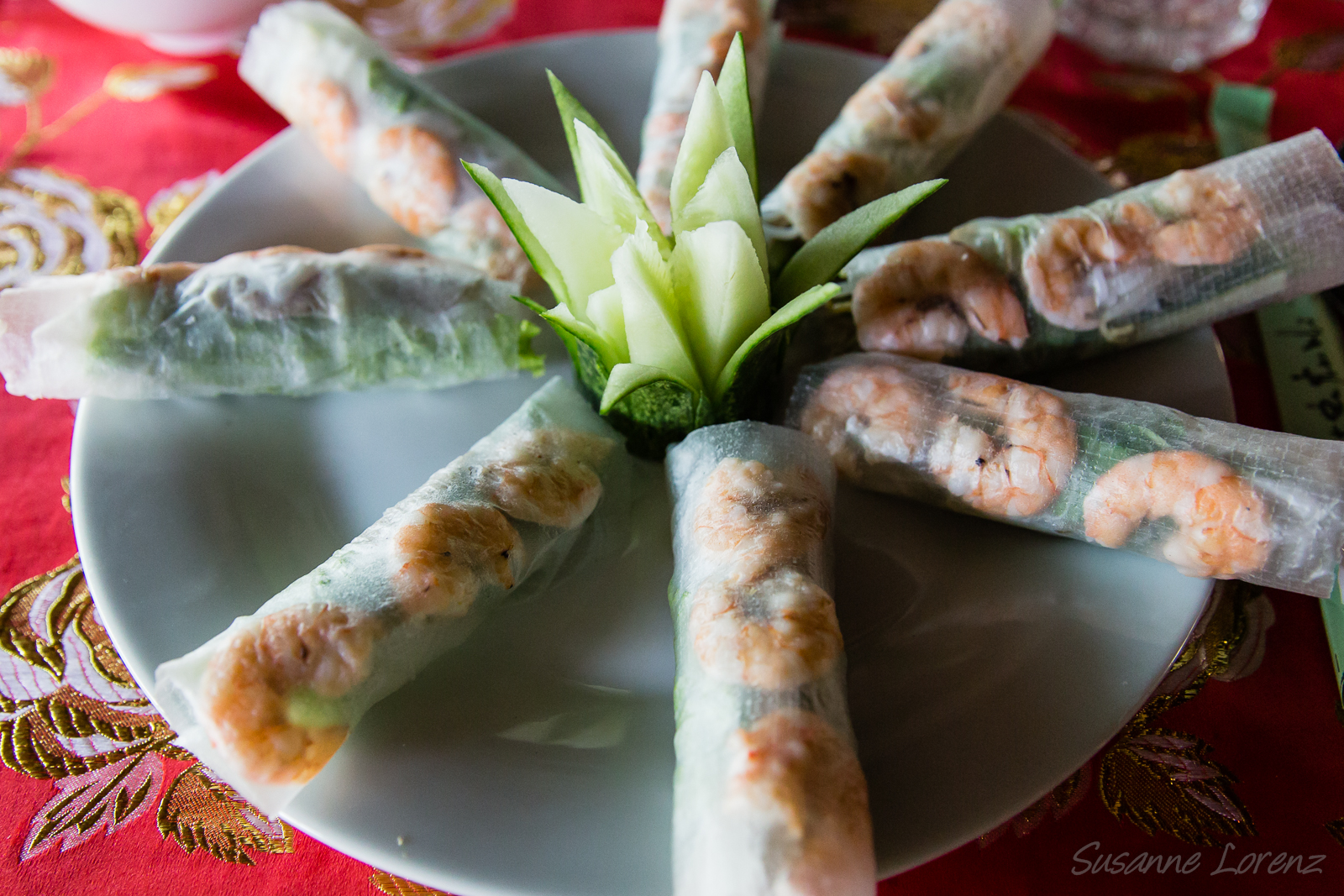 Wir genießen die Rollerfahrt, zumal die Straßen außerhalb der Stadt fast leer sind, und wir heute das erste Mal auf unserer Reise die Sonne sehen. Sonne! Endlich! Wir kehren mittags auf ein paar Sommerrollen in einem Ausflugsrestaurant ein.