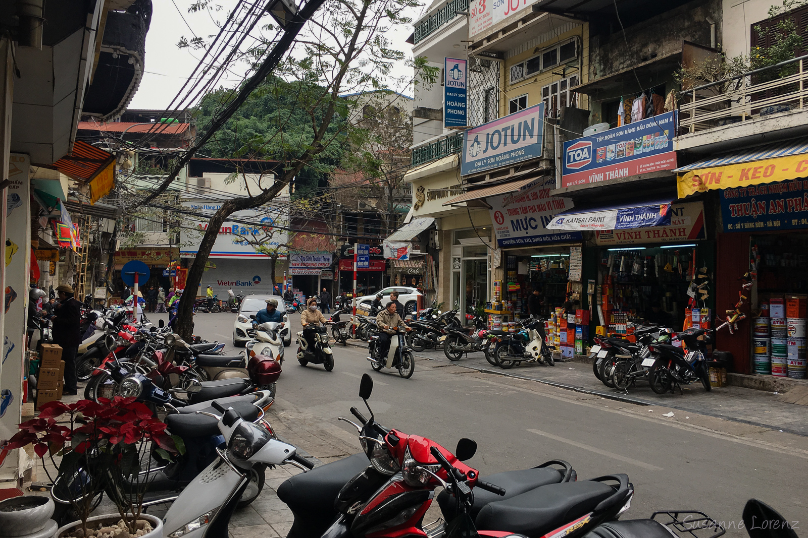 Der Charme dieser wurligen Stadt hat mich letztes Jahr schon komplett in seinen Bann gezogen, und es ist wunderschön, Ende Februar wieder hier zu sein. Wir kommen am frühen Vormittag an. Da wir letztes Jahr schon viel gesehen hatten, verspüren wir keinerlei Sightseeing- oder Fotografier-Druck, lassen uns einfach durch das Gassengewirr treiben, schauen die katholische Kathedrale an und verspeisen eine leckere Pho Bo an einem Straßenrestaurant - was haben wir uns darauf gefreut! Es ist relativ frisch, um die 17 Grad, was viele Vietnamesen dazu veranlasst, Daunenjacken und Ohrenschützer zu tragen. Für uns zum Eingewöhnen gerade richtig.